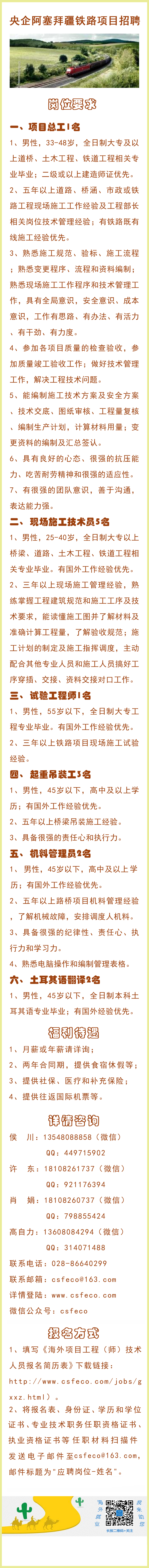 阿塞拜疆阿塞拜疆鐵路項(xiàng)目招聘15人