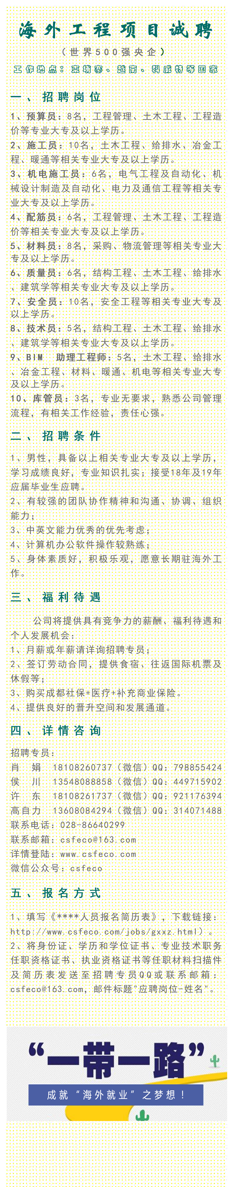 柬埔寨、越南、科威特等海外工程項目誠聘70人