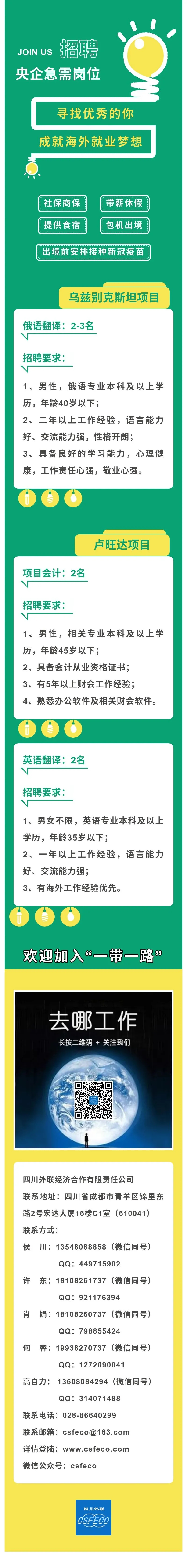 烏茲別克斯坦、盧旺達(dá)英、俄語翻譯、會計急聘!7人
